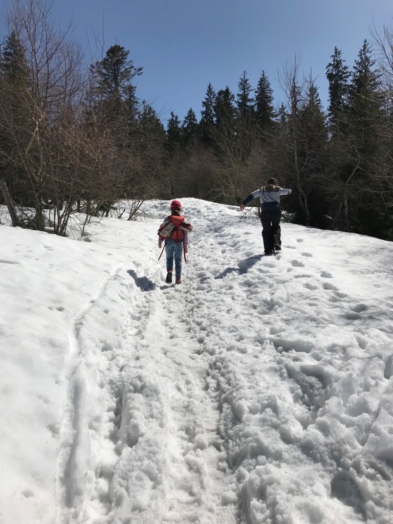 Von oben kommen uns sehr viele Menschen entgegen, teilweise in einfachen Sneakern, die wohl nicht mehr mit so viel Schnee gerechnet haben.