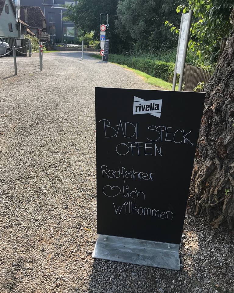 Die Schweiz ist extrem teuer, man zahlt hier alles mit Goldbarren. Das ist bekannt. Wir haben zum Glück noch ein paar Restgoldbarren vom letzten Besuch, kaufen uns im „Badi Speck“ 4 Oreoeis und geben großzügig Trinkgold.