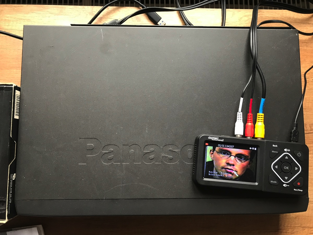 Jetzt hat man mehrere Möglichkeiten. Am günstigsten sind so kleine Adapter, die man zwischen VHS-Rekorder und Computer schalten kann. Die Amazon-Rezensionen bei den Geräten sind aber eher wenig ermutigend - v.a., wenn man mit einem Mac arbeitet. Dank Hinweis in einem Tweet habe ich mich dann für einen autarken Grabber entschieden. Der ist ein bisschen teurer, aber er hat auf Anhieb super funktioniert und man muss sich nicht mit irgendwelchen Treiberproblemen herumschlagen.
