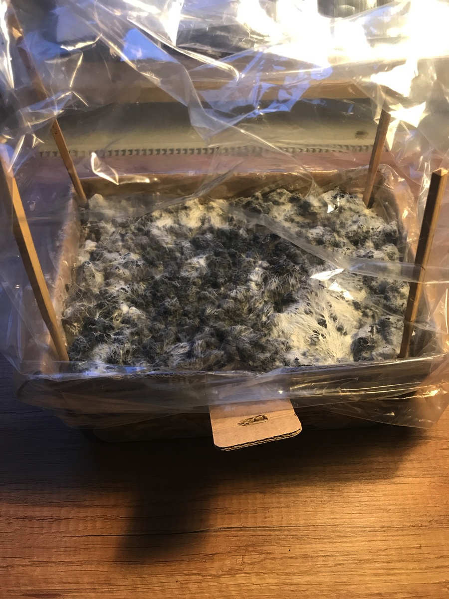 Drei Wochen sind vorbei. Zeit mal zu schauen, was der Pilzflaum macht. Er flaumt ganz gut.