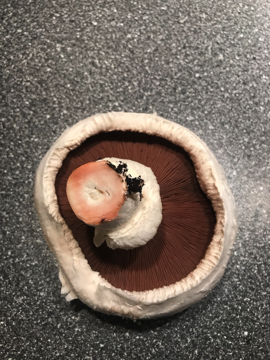 Und siehe da: Es ist ein Champignon! Und was für ein großer (das links auf dem Bild ist meine Hand). Mal schauen, was die nächsten Wochen noch bringen.