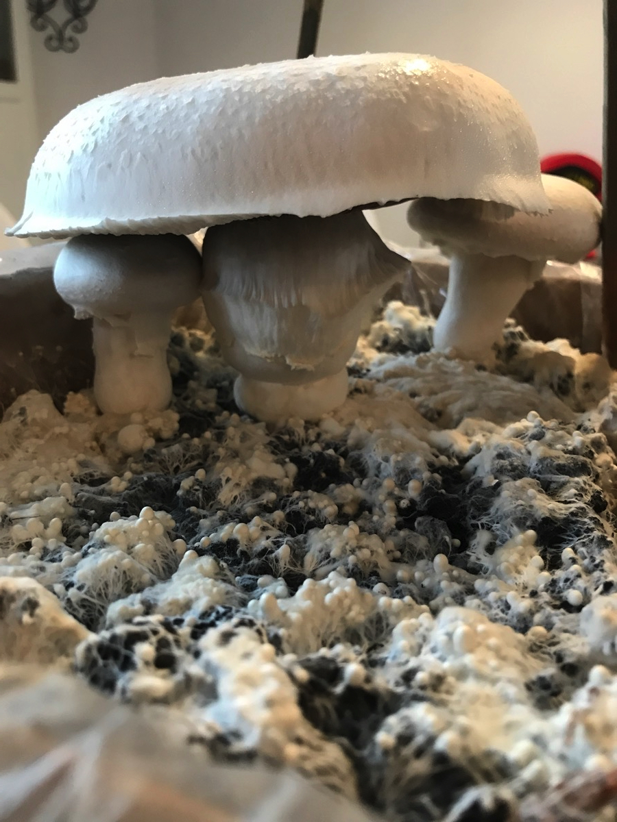 Was macht eigentlich die Pilzzucht? Heute Morgen mal wieder nachgeschaut. Wir haben jetzt eine kleine Pilzfamilie. P1 ist noch nicht ganz flügge und sucht Unterschlupf beim großen Pilz.