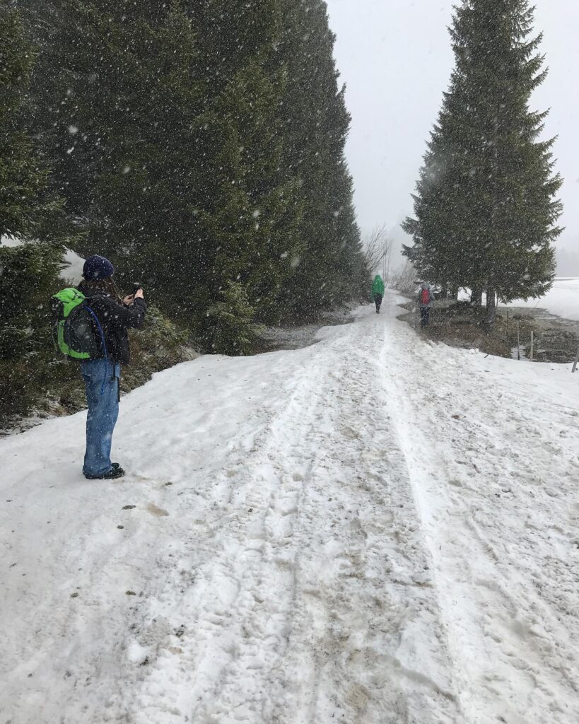 Der restliche Winter verläuft noch so, wie ich es mir jetzt gerade gar nicht mehr richtig vorstellen kann. Schulausfälle wegen Corona, immer wieder Home-Office und im Freien treffen. Schön: Mit Ivo spazieren gehen. Wir fotografieren Bäume und uns dabei, wie wir Bäume fotografieren.
