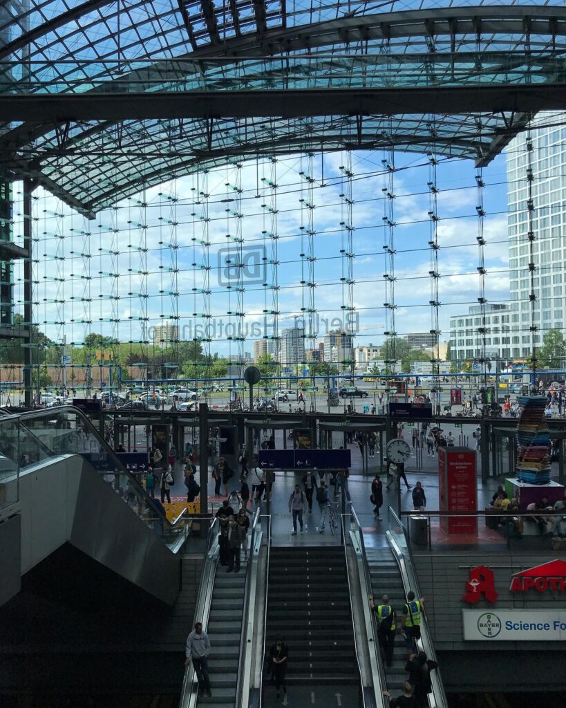 Berlin Hauptbahnhof, Sonne, die Frisur sitzt.