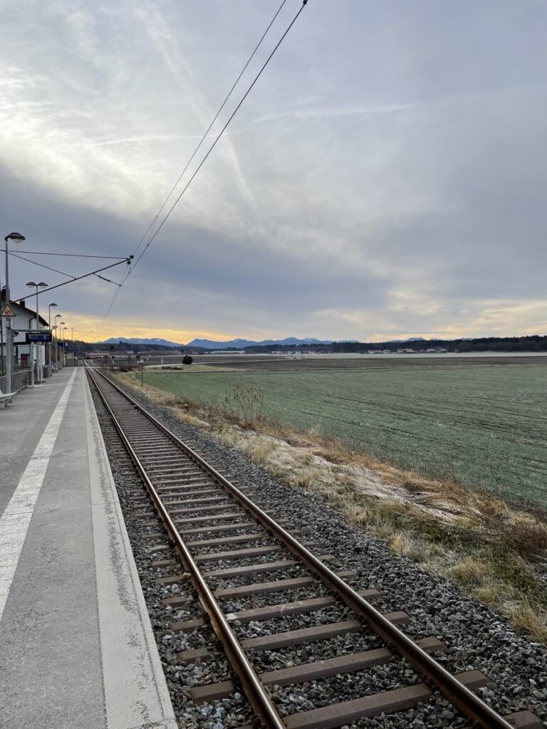 Ein schöner Spaziergang am Sonntagvormittag. Mit der S7 (Richtung Kreuzstraße) geht es in einer halben Stunde stadtauswärts. Peiß kommt eine Station nach Aying. Von dort aus geht der kleine Rundweg über Felder, Hügel und einen Wald zurück nach Aying. Immer mit schönem Blick auf die Alpen. Da wir schneller sind, als gedacht, ist es erst 11 Uhr und eine Einkehr zum Mittagessen ins Ayinger Bräustüberl fühlt sich noch falsch an. Da würden die Leute komisch schauen. Müssen wir das nächste mal besser planen. Dafür sind wir um kurz nach 12 schon wieder zu Hause. Die Kinder haben gerade gefrühstückt.