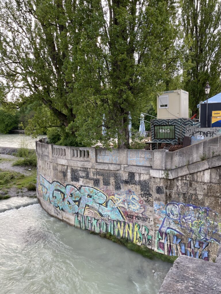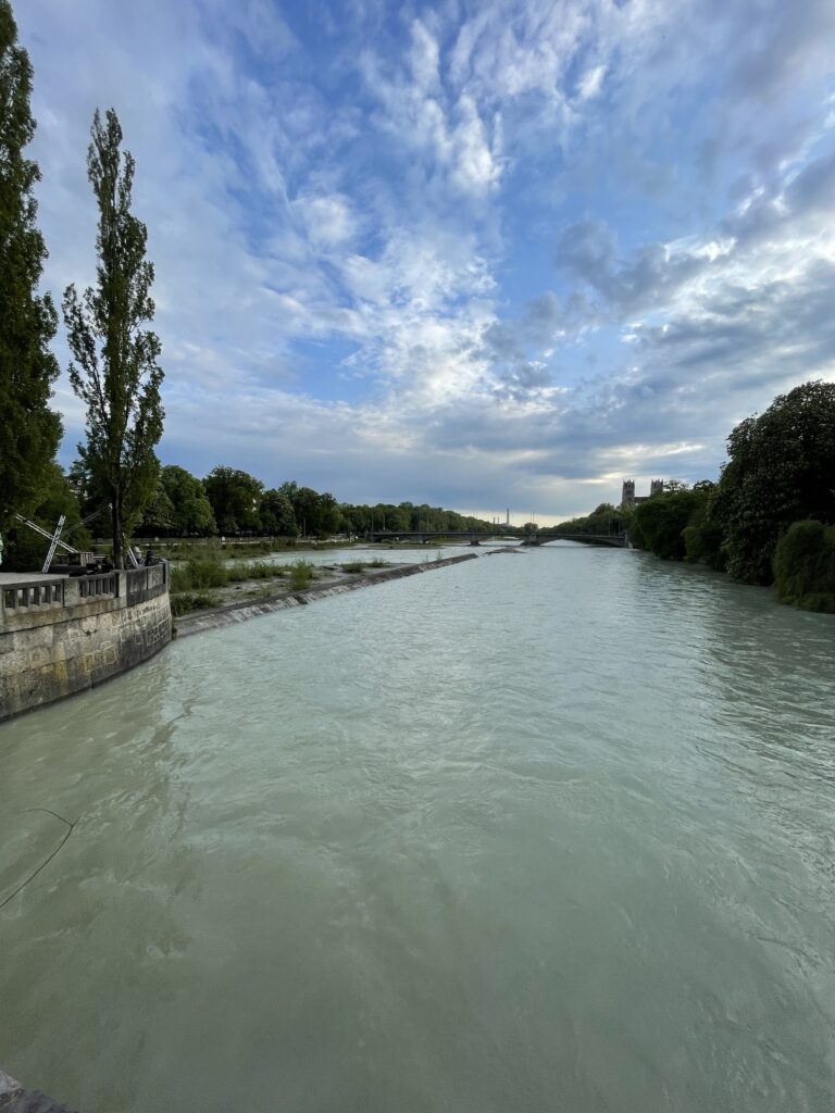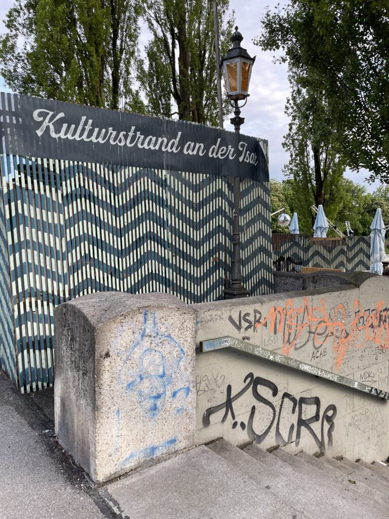 Auf dem Heimweg noch ein wachsames Auge auf die Isar. Das Hochwasser zieht sich weiter zurück. Seit ein paar Tagen hat der Kulturstrand auf der Corneliusbrücke geöffnet. Man wünscht ihm ein paar Wolken weniger und ein paar Grad Celsius mehr.