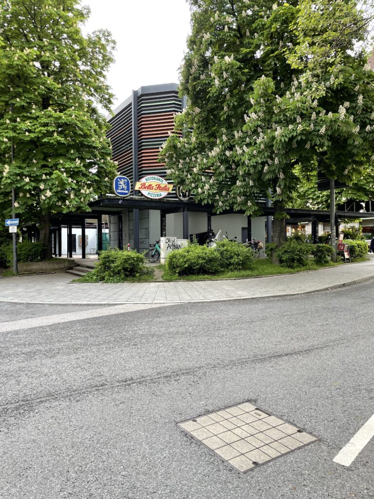 Fahrradabstelltipp Innenstadt für Regenwetter. Ecke Herzogspitalstraße/Herzog–Willhelm–Straße bleibt das Radl unter den Vordächern bei der Pizzeria Bella Italia trocken.