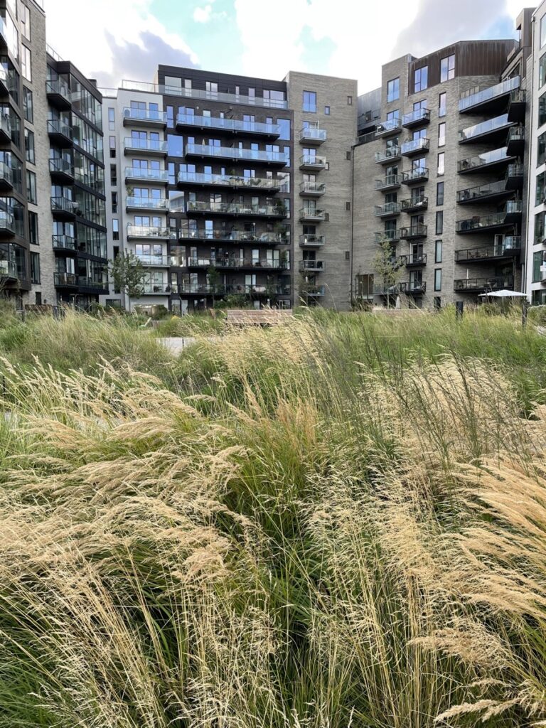 Ein Schild erklärt, dass hier ein neues Quartier entsteht, was speziell für Singles, Studenten und Senioren geplant wurde (es scheint so neu, dass man dazu relativ wenig in nicht dänischer Sprache findet).