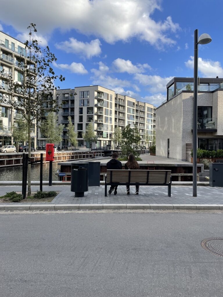 Nørrebro ist ein multiethnischer Stadtteil und der komplette Superkilen ist voll mit über hundert kleinen und großen Einzelelementen, die von den unterschiedlichen Herkunftsländern der Bewohner*innen inspiriert sein sollen. Ich sitze hier zum Beispiel auf einer Bank aus Deutschland. Ich besetze also die Deutschen Bank.