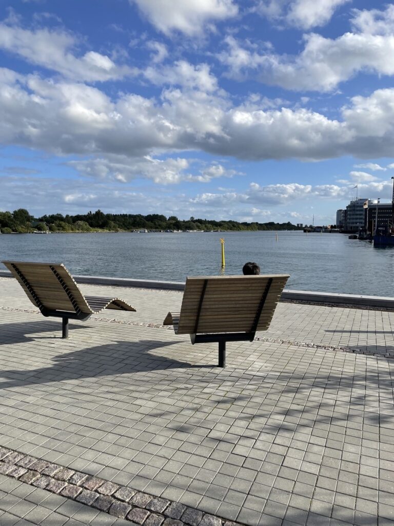 Bis wir schließlich auf Verdacht Haltestelle Enghave Brygge aussteigen. Da kann man recht einsam rumsitzen und aufs Wasser schauen.