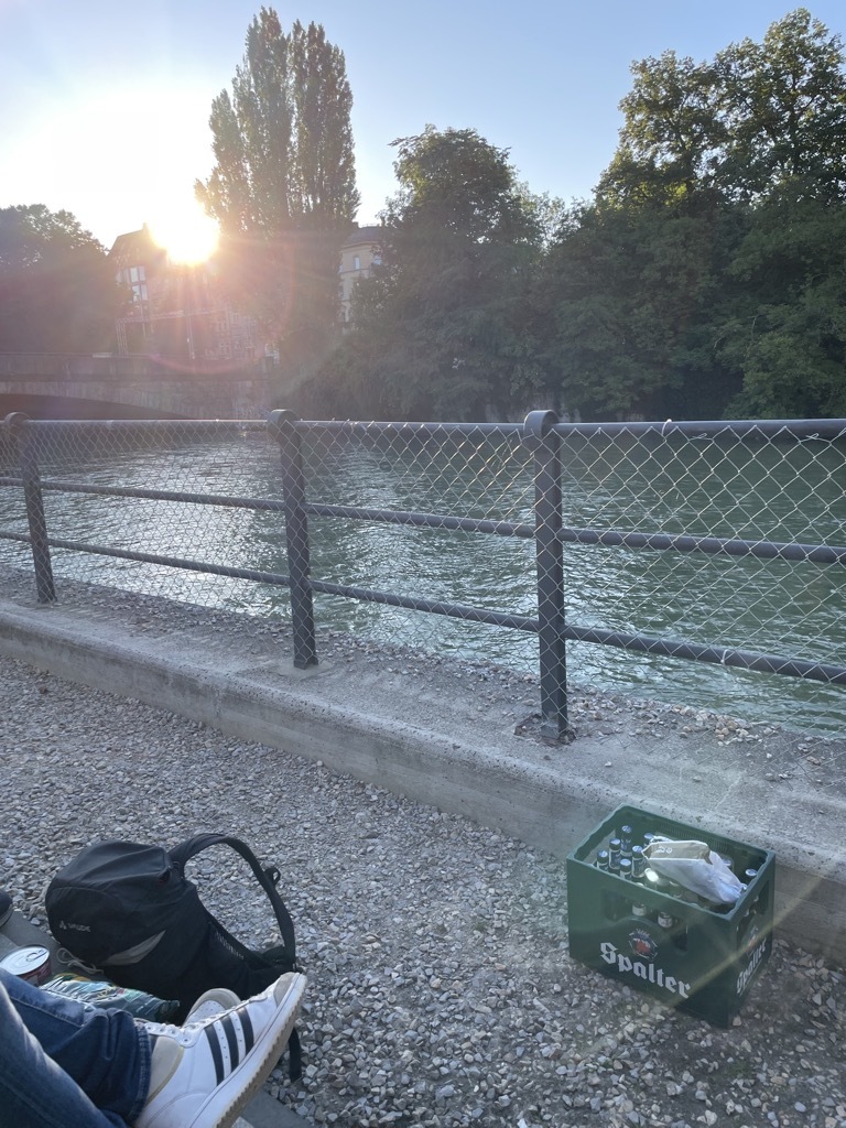 Der Kasten Spalter-Bier vom Wochenende begleitet mich weiter durch die Woche. Ich nehme ihn mit zum Stammtisch, der aufgrund hervorragender Witterung noch mal draußen stattfinden kann. Die neue Isartreppe an der Corneliusbrücke/Eingang Deutsches Museum ist schön geworden. Schön, um ein paar Spalter Freiheit zu leeren. Wir lassen den Tag lottrig ausklingen.