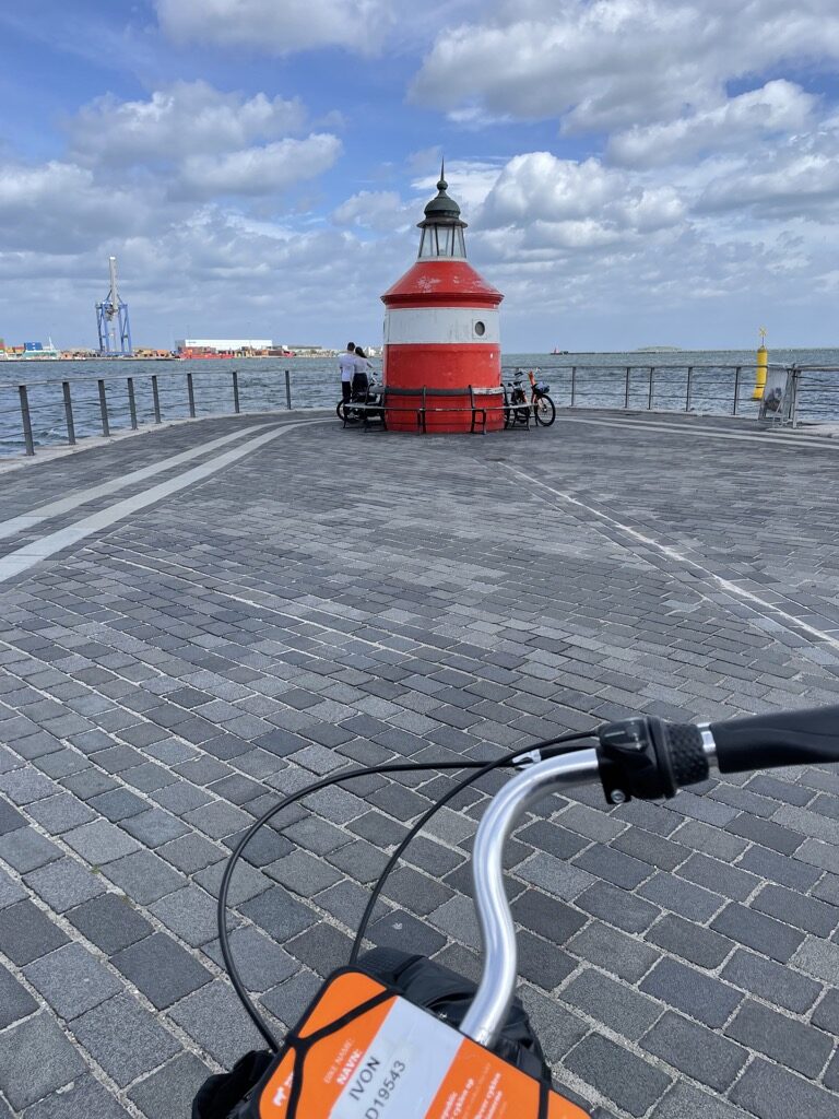 Von Kopenhagen auf eine Insel mit dem Zug und dort dann schon wieder mit dem Leihrad. Diesmal über den Strand.