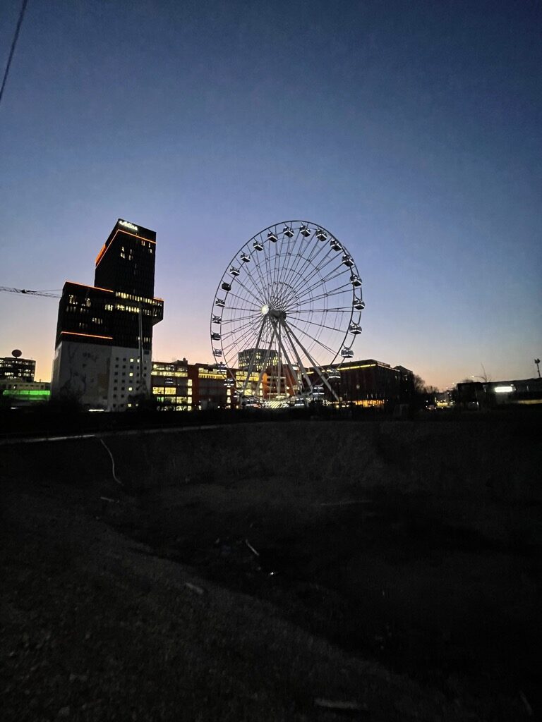 Abends dann Einkaufsrunde. Und dank Jahreskarte kann ich auf dem Rückweg einfach kurz eine halbe Stunde ins Riesenrad einsteigen. Mag das immer noch. Jahreskartenkauf nie bereut. Kurz mal ganz alleine in einer Kapsel sitzen, niemand nervt und dabei noch den wunderbaren Rundumblick auf die ganze Stadt. Die einen steigen in einen hermetischen Floating-Tank, mein Kraftort ist die Riesenradgondel.