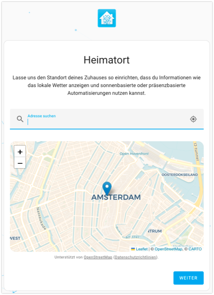 Im nächsten Schritt legt man den Wohnort fest. Das kann später sinnvoll sein, wenn man z. B. so was machen will, wie: Immer wenn ich die Wohnung verlasse, soll nach 5 Minuten das Licht ausgehen.
