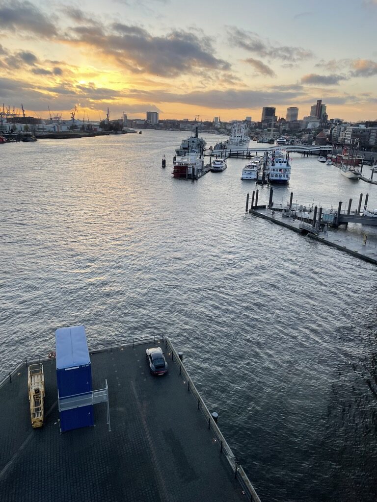 Der Zug fährt pünktlich ab und ich storniere auf Höhe Hackerbrücke das Car-Sharing-Auto. Sieben Stunden später flanieren wir an der Elbe entlang bis hinauf zur und in die Elbphilharmonie.