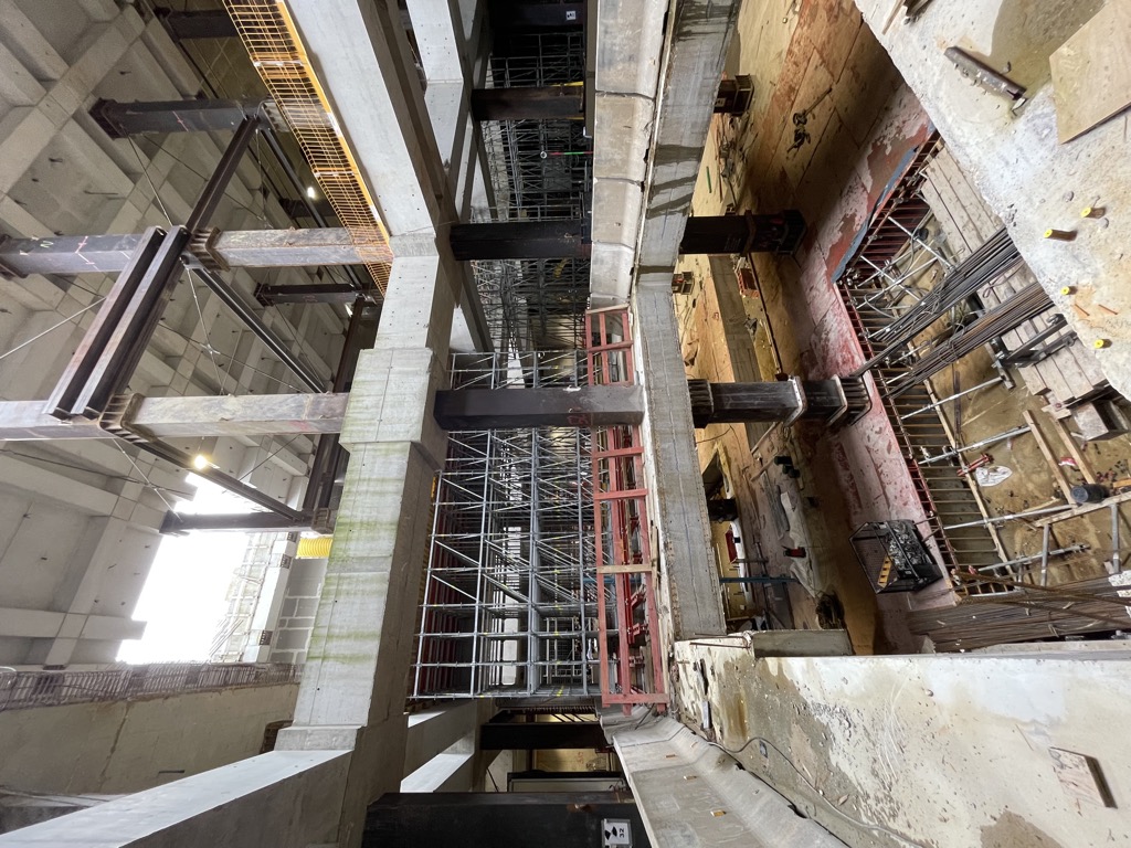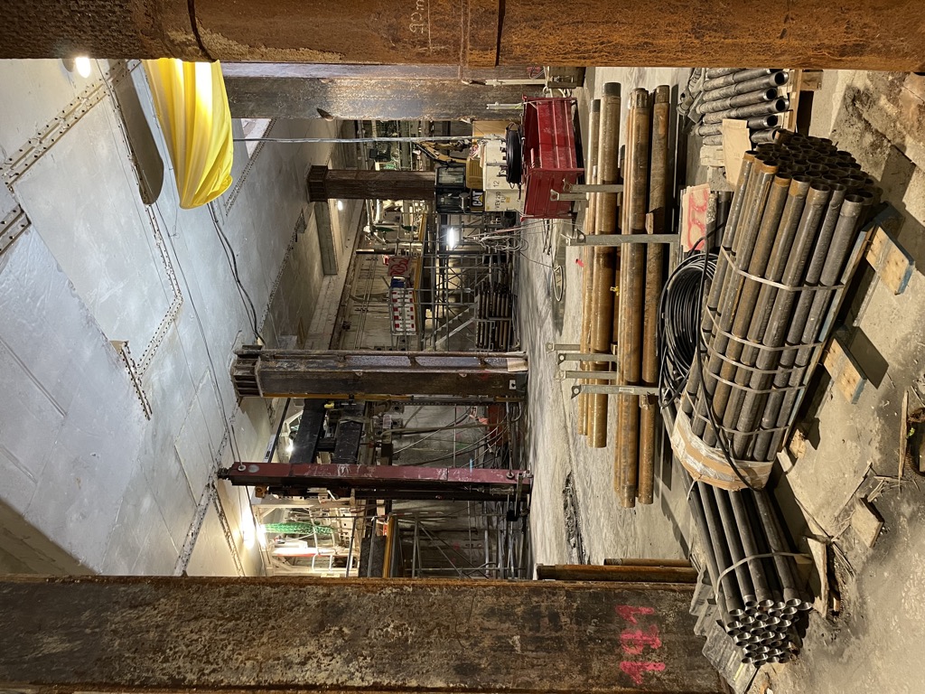 Ein erfahrener Tiefbauingenieur erzählt uns ausführlich, was da gerade abgeht und was schon alles abging. Es ist alles sehr beeindruckend. Für mich ist das Ingenieurs-Hexenwerk. Das ganze Projekt sucht deutschlandweit seinesgleichen. Momentan ist man knapp 40 Meter tief, es soll aber noch mal weiter runtergehen und das hat man noch nicht so oft gemacht in so einer Innenstadtlage. Neuland ab jetzt.
