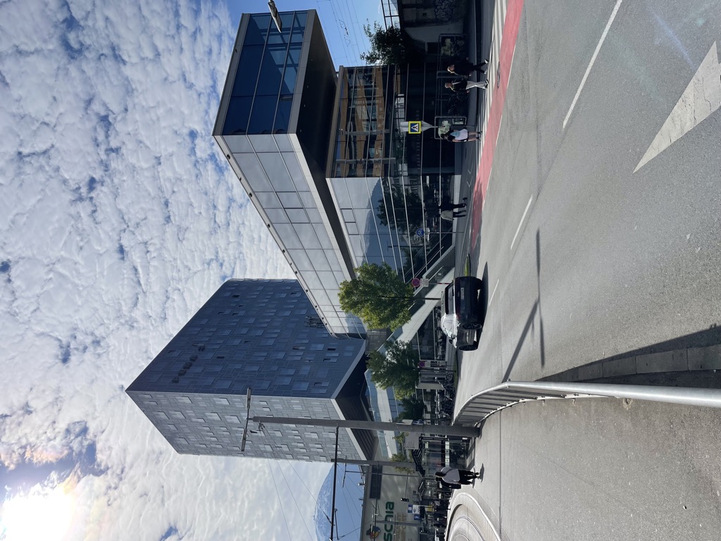 Der erste Morgen führt uns erst mal in die Innsbrucker Stadtbibliothek, Langjährige Blogleser wissen, dass jetzt erst mal ein bisschen Library-Porn-Fotos folgen. Irgendwas fotografierenswertes hat jede Bibliothek. Die Innsbrucker-Stadtbibliothek will aber lieber nicht fotografiert werden von innen. Das wird direkt am Eingang deutlich zum Ausdruck gebracht und aus langjähriger Lebenserfahrung weiß ich natürlich, dass man einer Bibliothekarin nicht widerspricht. Schade. Die Bibliothek ist ziemlich neu und modern. Kann sich sehen lassen, will aber nicht gesehen werden. Deshalb nur ein Foto von außen und eins von drinnen nach draußen.