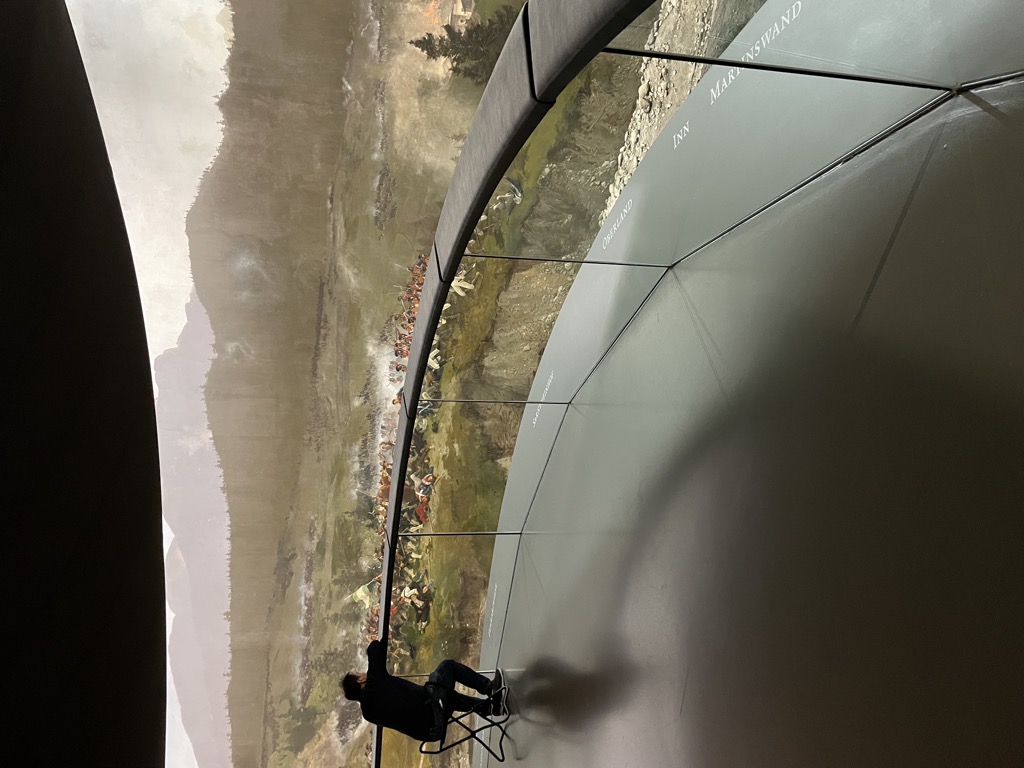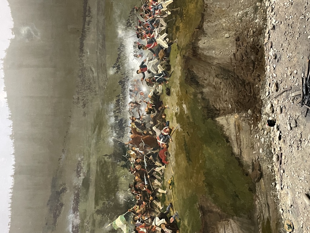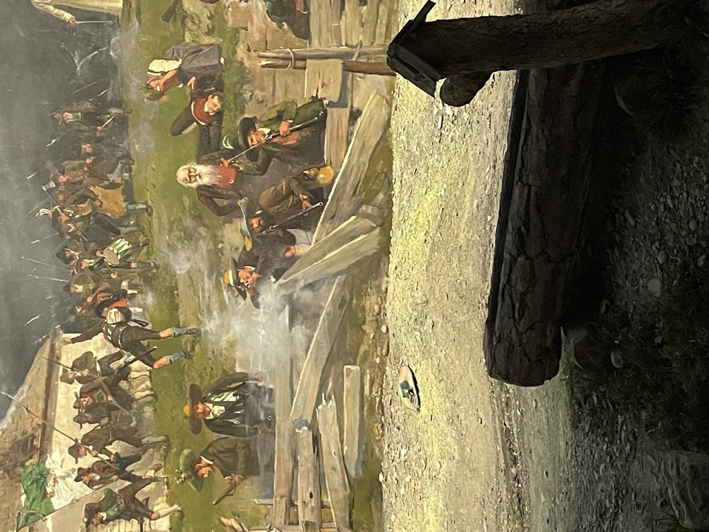Wieder im Tal geht es zum Tirol-Panorama. Klingt langweilig, ist aber durchaus interessant. Panoramen waren früher mal eine kurze Zeit so was ähnliches wie Kino. Auf riesigen Rundumleinwänden wurden Geschichten gemalt und in extra dafür errichteten Gebäuden zur Schau gestellt. Hat sich aber nicht so lang gehalten, weil dann irgendwann Bewegtbild aufkam. Das Tirol-Panorama blieb erhalten und man hat dafür 2010 ein eigenes neues Gebäude errichtet. Das Bild zeigt den Kampf der lokalen Bauern gegen Bayern und Franzosen am Bergisel.