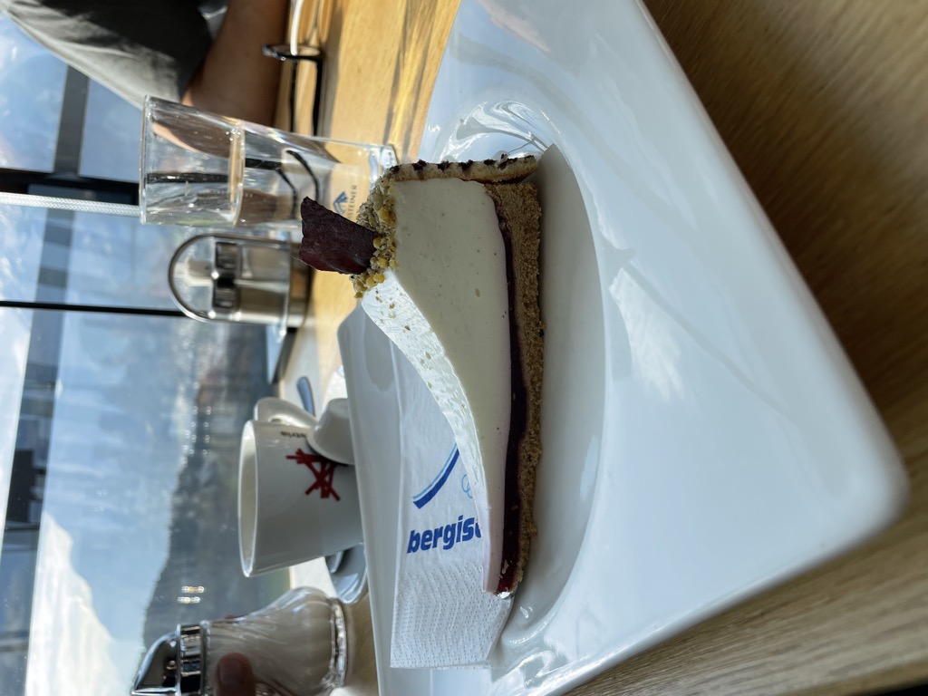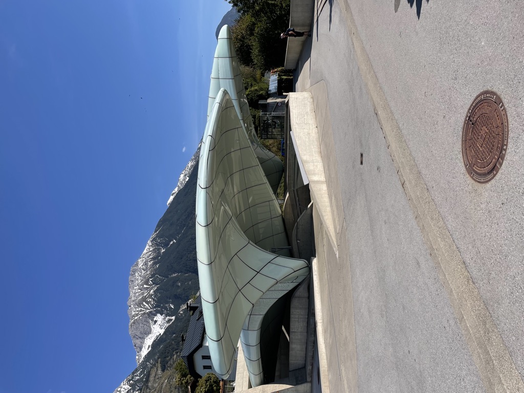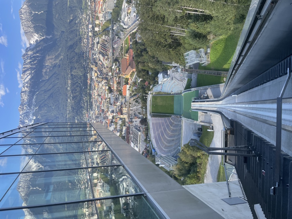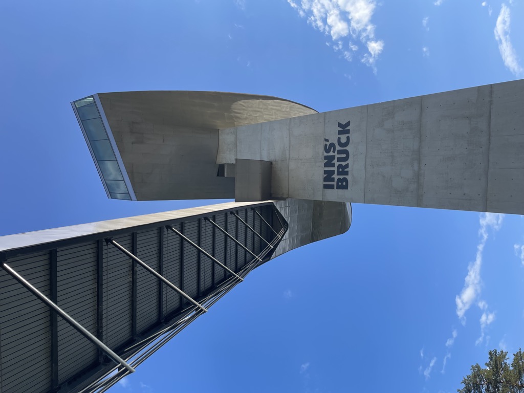 Direkt oberhalb vom Museum steht die Olympiaschanze Bergisel. Kennt man von der jährlichen Vierschanzentournee. Sehr hoch, sehr steil alles. Denn Kuchen nimmt man in Schanzenform zu sich.