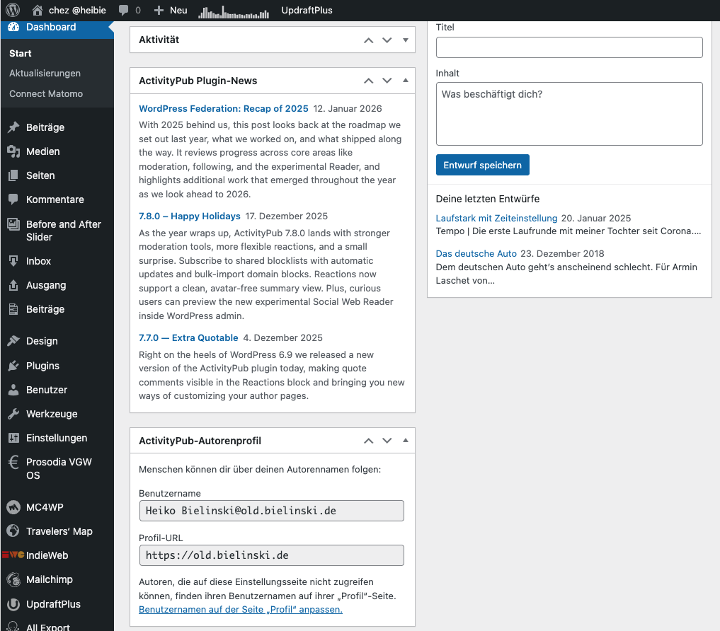 Die zweite Unabhängigkeitsbewegung kam etwas überraschend. Ich bin mit WordPress als CMS für mein Blog schon ein paar Jahre unzufrieden. Das ehemalige Blogging-Tool hat sich immer mehr aufgebläht um Funktionen, die ich eigentlich nicht brauche. Ich habe Plugins angesammelt, die Plugins haben die Datenbank und das Filesystem vollgemüllt und es wurde alles immer größer und unübersichtlicher. Am Ende ist mein WordPress-Ordner 23 GB groß. Dazu kommt eine DB mit 135 MB. Daten aus 15 Jahren Bloggen. WordPress ist zwar Open-Source und da wird jetzt nicht jemand zentral den Ausknopf drücken können, aber eine gewisse Abhängigkeit von der kommerziellen US-Plattform WordPress.org besteht bestimmt.