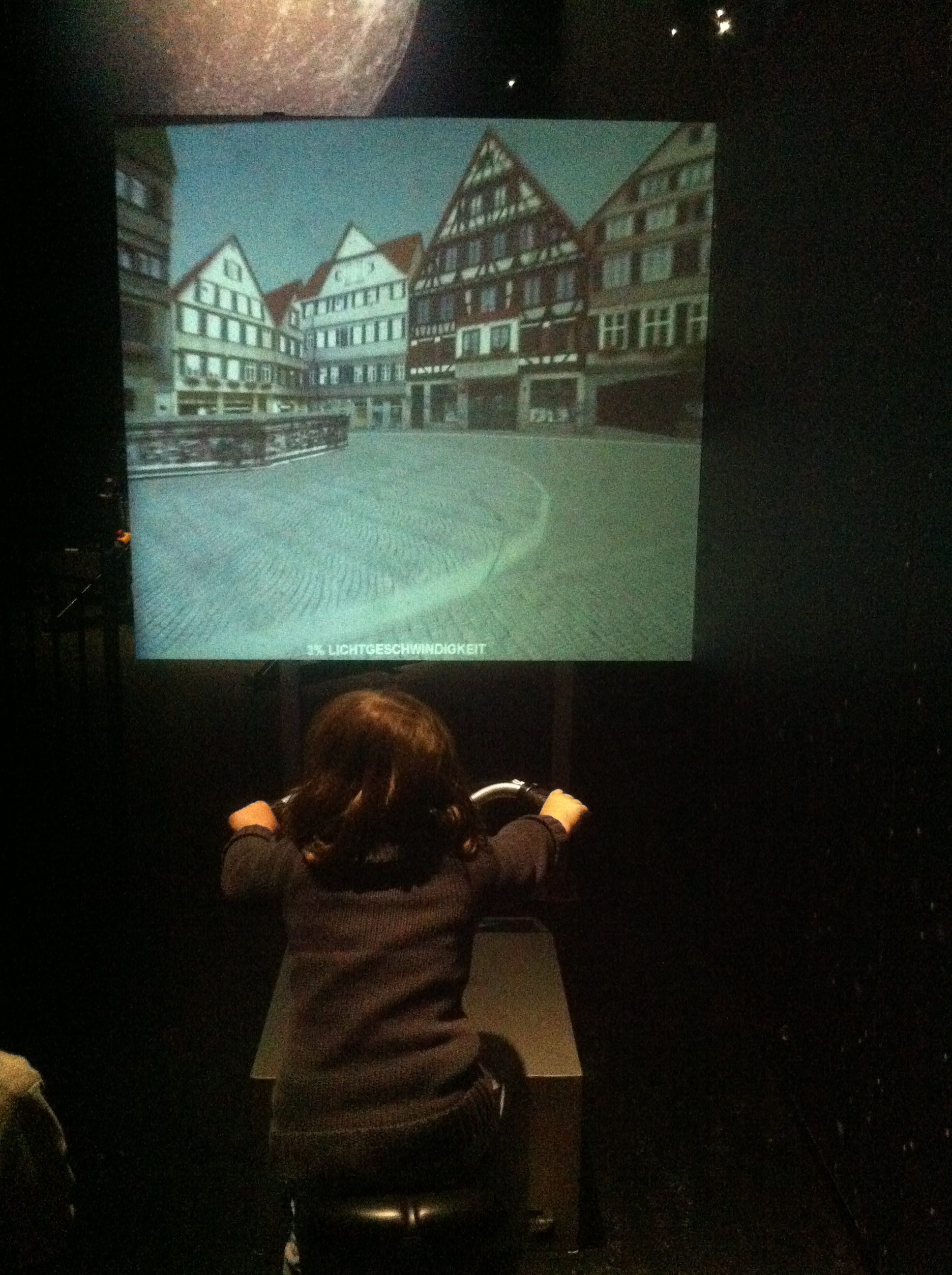 Eigentlich wollten wir ja ins Maus-Museum. Das bekommt man aber nur, wenn man das volle Odysseum-Paket bucht. Und das sind immerhin 44 Euro für eine vierköpfige Familie. Nicht ganz billig, aber dafür kann man dort dann auch den Tag ganz gut vertrödeln. Zu jeder vollen Stunden gibt's einen 3-D-Film (entweder Dinos oder Kapitän Nemo), im eigentlichen Maus-Museum werden viele Fragen und Themen aus der Sendung behandelt. Überall sind Monitore angebracht auf denen immer irgend ein Maus-Beitrag läuft. Das sorgt alles für einen ziemlichen Geräuschpegel, der es teilweise ganz schön schwer macht, den eigenen, nicht des Lesens mächtigen Kindern, die einzelnen Ausstellungsgegenstände zu erklären. Noch dazu befindet sich alles in einer einzigen großen Halle. Akustisch also ein Problemfall. Spaß hatten die Kinder trotzdem. V.a. auch mit dem riesengroßen, vierstöckigen Baustellen-Klettergerüst. Und ich hab Christophs grünen Originalpullover gesehen (mit Loch).