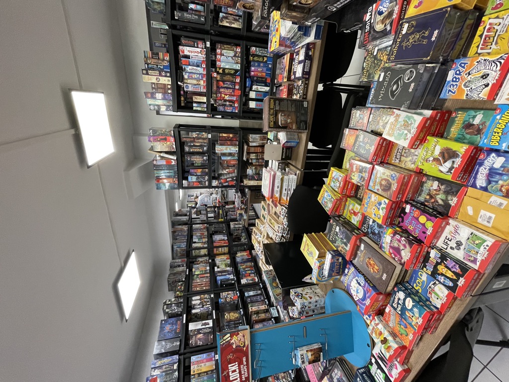 Bin auf der Suche nach einem Geburtstagsgeschenk. Ein Brettspiel muss her. Bei unserem letzten Berlinbesuch war ich fasziniert vom Brettspielladen in der Eberswalder Straße und hab mich gefragt, warum es so was nicht in München gibt. Ich bin also in Ermangelung eines ähnlichen Fachgeschäftes schon fast auf dem Weg zum Obletter, einem bunten Spielwarengemischtladen, der neben bunten Barbiepuppen und WWII-Revell-Panzerbastelsets halt auch Brettspiele hat, als mich eine Kollegin auf Funtainment hinweist. Gibt es seit 1996 (!) in München, hat ein überwältigendes Sortiment an Board, Karten, Tabletops, Mangas und Konsolenspielen auf vier separaten Verkaufsflächen. Alles ein bisschen unscheinbar im Hinterhof in der unglamourösen Landwehrstraße. Auch nach fast 25 Jahren immer noch mal neue Ecken in der Stadt kennenlernen!