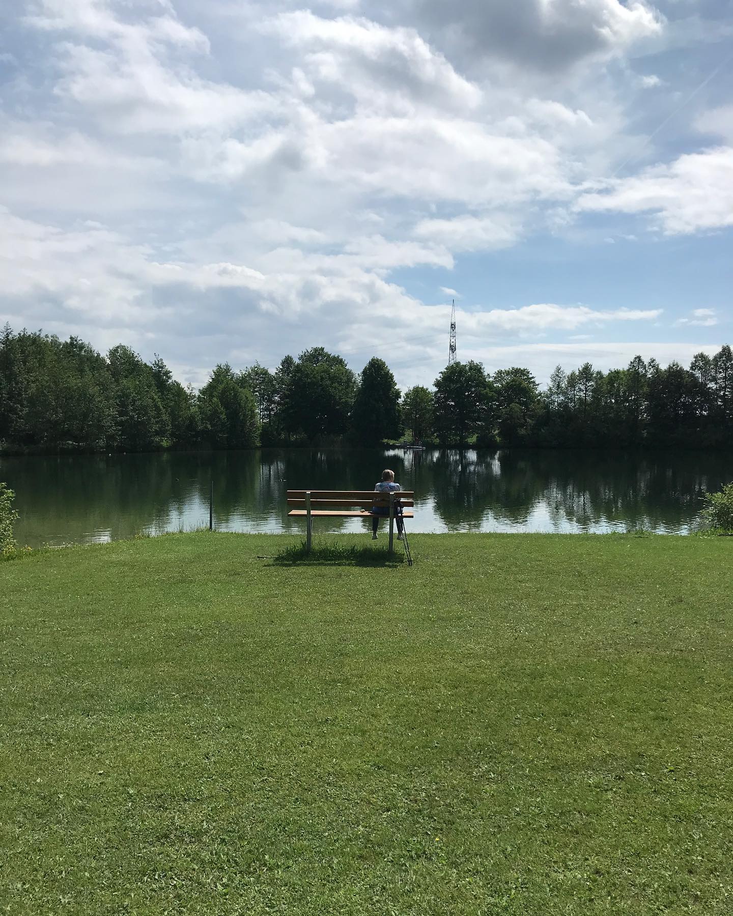 Grüner Felder vor Kränen. In Freiham wird gebaut, am Germeringer See lässt man auf der Beinebaumelbank die Beine baumeln. Tour im Blog: 🚴♂️