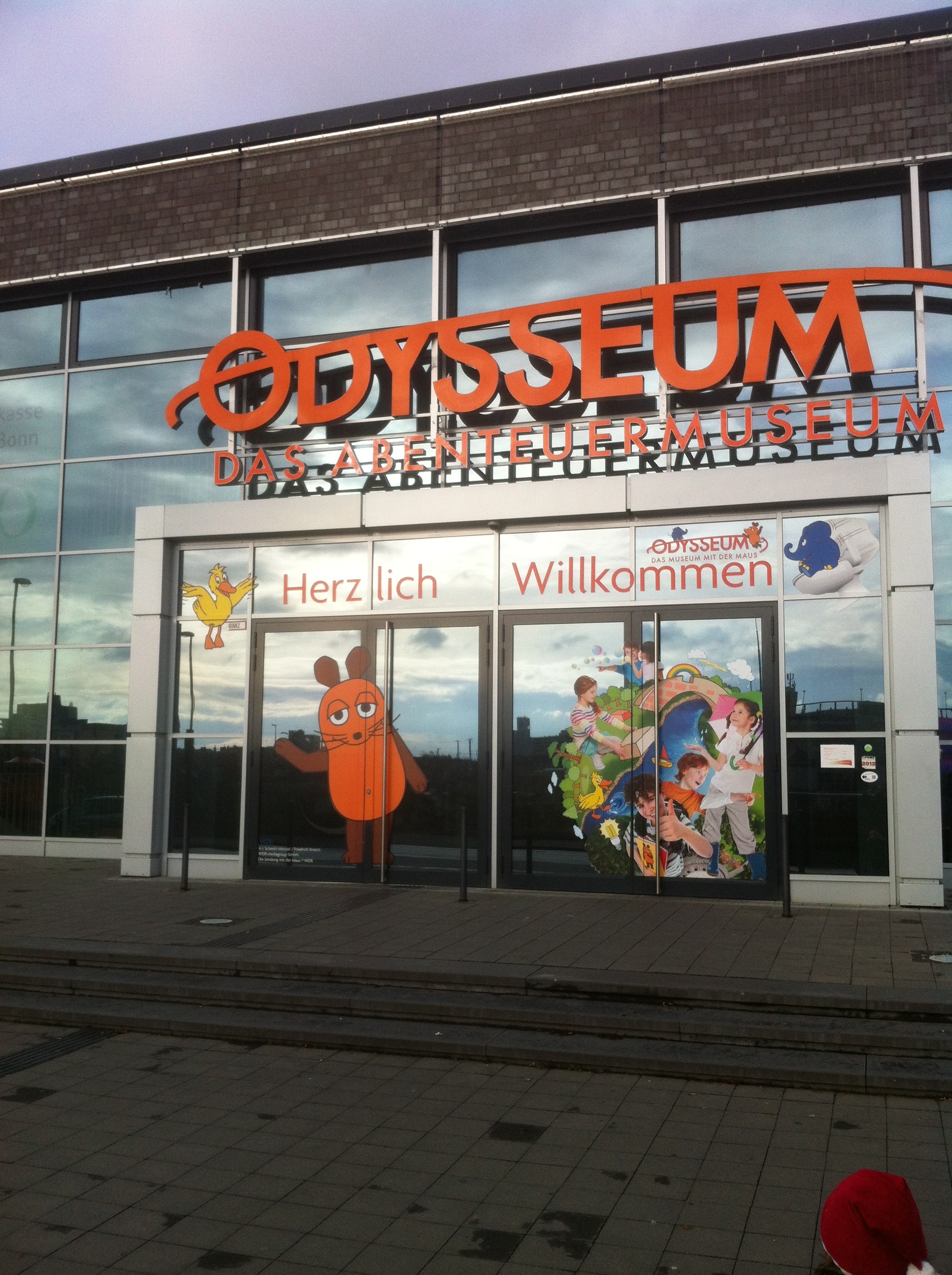 Eigentlich wollten wir ja ins Maus-Museum. Das bekommt man aber nur, wenn man das volle Odysseum-Paket bucht. Und das sind immerhin 44 Euro für eine vierköpfige Familie. Nicht ganz billig, aber dafür kann man dort dann auch den Tag ganz gut vertrödeln. Zu jeder vollen Stunden gibt's einen 3-D-Film (entweder Dinos oder Kapitän Nemo), im eigentlichen Maus-Museum werden viele Fragen und Themen aus der Sendung behandelt. Überall sind Monitore angebracht auf denen immer irgend ein Maus-Beitrag läuft. Das sorgt alles für einen ziemlichen Geräuschpegel, der es teilweise ganz schön schwer macht, den eigenen, nicht des Lesens mächtigen Kindern, die einzelnen Ausstellungsgegenstände zu erklären. Noch dazu befindet sich alles in einer einzigen großen Halle. Akustisch also ein Problemfall. Spaß hatten die Kinder trotzdem. V.a. auch mit dem riesengroßen, vierstöckigen Baustellen-Klettergerüst. Und ich hab Christophs grünen Originalpullover gesehen (mit Loch).