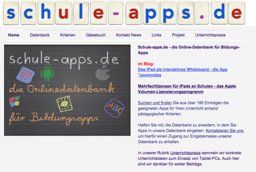 Das Projekt wird betrieben von einem engagierten Sonderschullehrer aus Heilbronn. Hier werden Apps erfasst, die für den pädagogischen Einsatz geeignet sind, v.a. also Lernsoftware. Die Datenbank umfasst knapp 300 Einträge, die nach speziellen, pädagogischen Kriterien bewertet werden und detailliert suchbar sind. Das Einsatzgebiet reicht von der Oberstufe bis hinunter zu Kindergärten. Zielgruppe sind natürlich v.a. Pädagogen, Lehrer und Erzieher. Interessierte Eltern finden aber auch einen guten Einstieg in den Bereich der Lernsoftware.