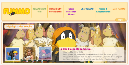 Herausgegeben vom JFF – Institut für Medienpädagogik in Forschung und Praxis bewertet die Redaktion von FLIMMO das aktuelle (Kinder)-TV-Programm und ordnet alle Sendungen in die Kategorien „Kinder finden’s prima“, „Mit Ecken und Kanten“ oder „Nicht für Kinder“. Die besprochenen Inhalte sind sehr umfangreich und decken alle wichtigen, deutschen Fernsehsender ab. Außerdem bietet FLIMMO Specials zu Themen wie „Vermarktung von Fernsehfiguren“ oder „Fernseherziehung“ an und berichtet auch über Kino, Hörspiele, Computerspiele und Internet. Die monatlich erscheinende Print-Ausgabe liegt kostenlos z.B. in Bibliotheken oder anderen öffentlichen Einrichtungen aus. Neben der Webseite gibt es alle Inhalte auch noch in der kostenlosen FLIMMO-App übersichtlich nach TV-Sendern aufbereitet.