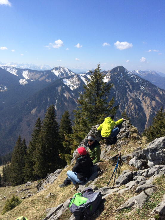 Dann weiter nach rechts, den Berg hoch. Der Weg wird hier steil und steinig. Nach knapp 30 Minuten hat man es aber geschafft und geht jetzt noch das Restsstück auf dem Berggrat bis zum Bodenschneid-Gipfel. Dort den Ausblick und die Brotzeit genießen.
