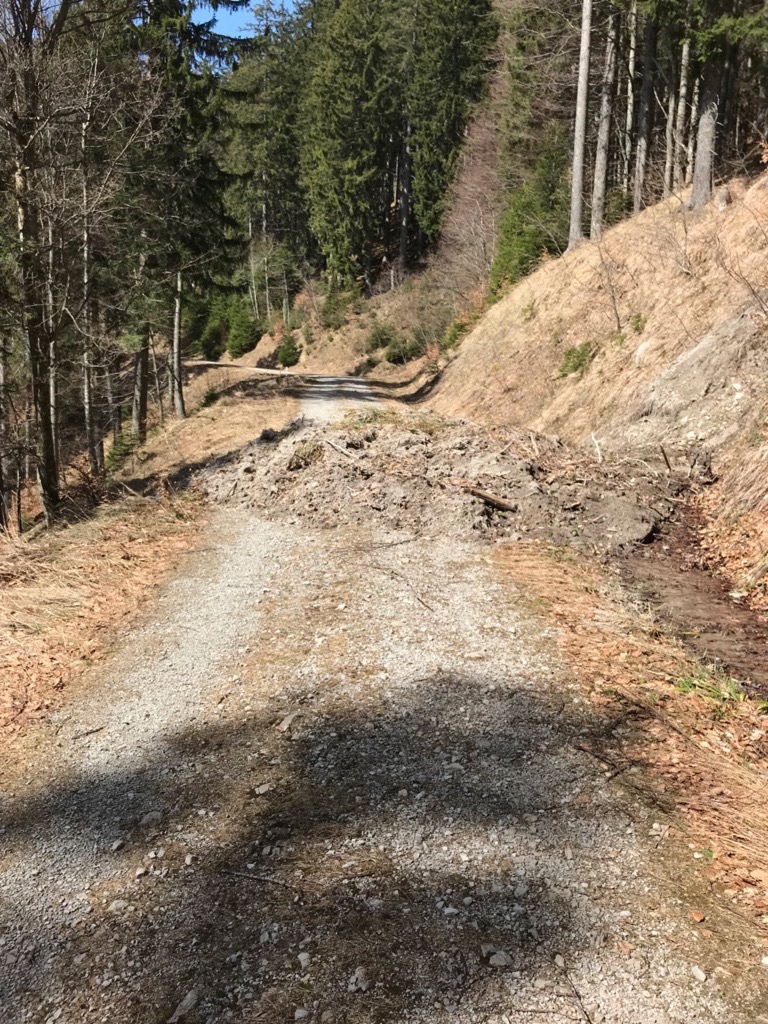Wir drehen also um und biegen nach kurzer Zeit ab auf den Forstweg Richtung Alpbachtal. Den laufen wir dann noch mal eine gute Stunde entlang und sind schließlich wieder am Bahnhofsparkplatz von Tegernsee.