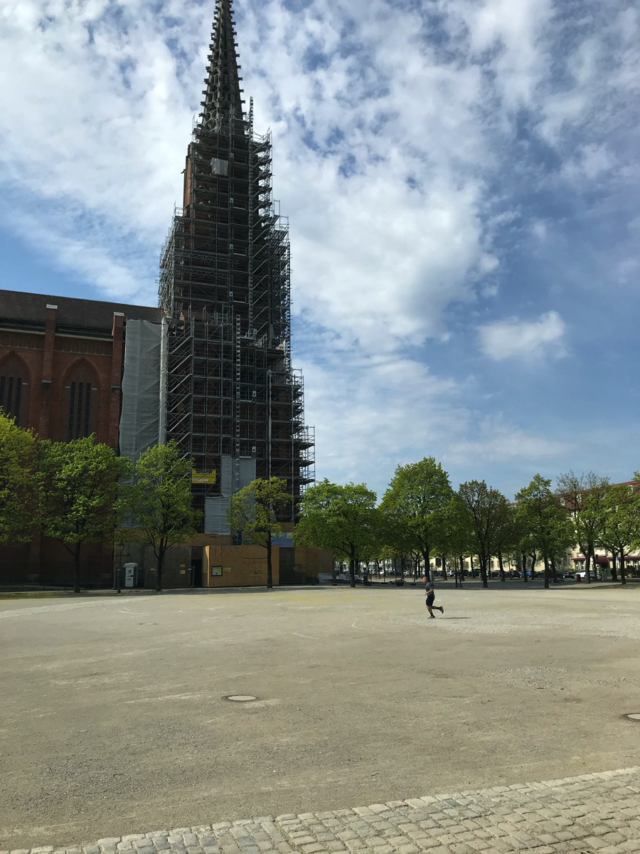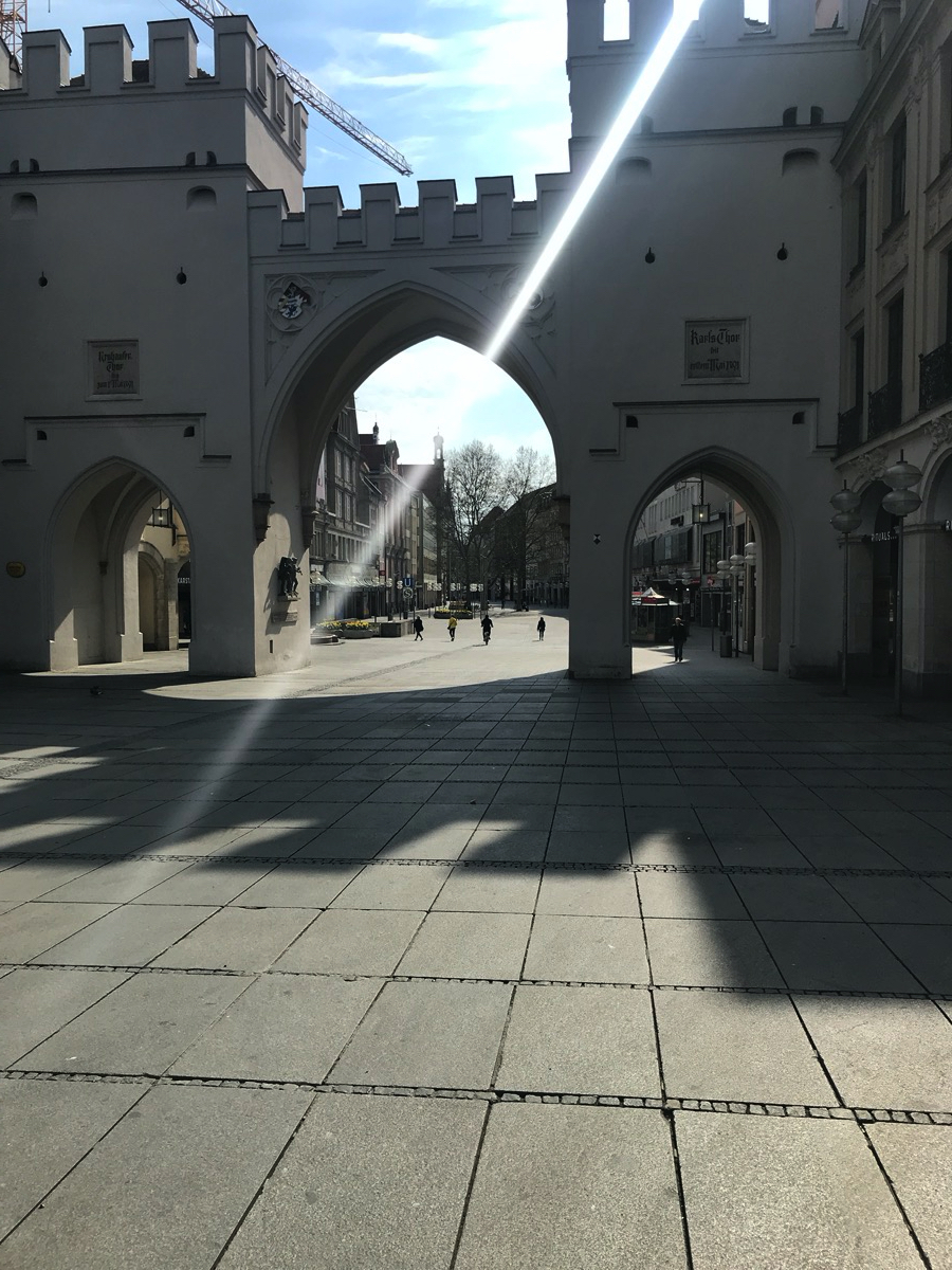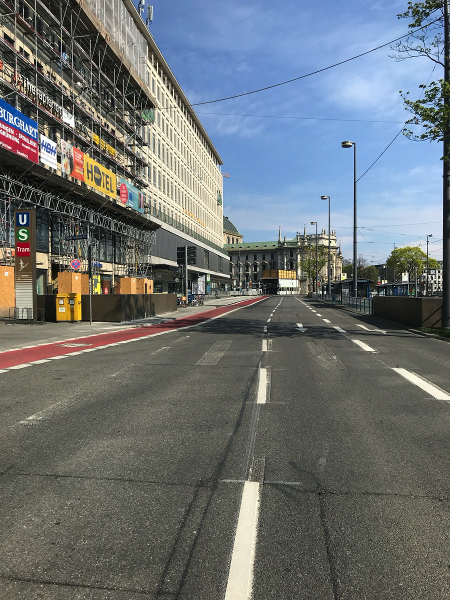 Würde man unter normalen Umständen (kein Feiertagscorona-Shutdown) niemals machen. Die Brücke vorm Deutsche Museum wird vorbereitet auf den Umbau (weniger Auto, mehr Fußgänger). Im Tal, Viktualienmarkt, Hauptbahnhof, Stachus, Marienplatz, Gärtnerplatz, Mariahilfplatz. Vom Gärtnerplatz bis nach Hause fast komplett auf der freien Straße gerannt. Normalerweise zahlt man dafür 50€ Teilnahmegebühr und sie nennen es München Marathon. Wunsch für später: das mit den Autos kann so bleiben, dafür mehr Fußgänger und Radfahrer auf dem ganzen Platz.