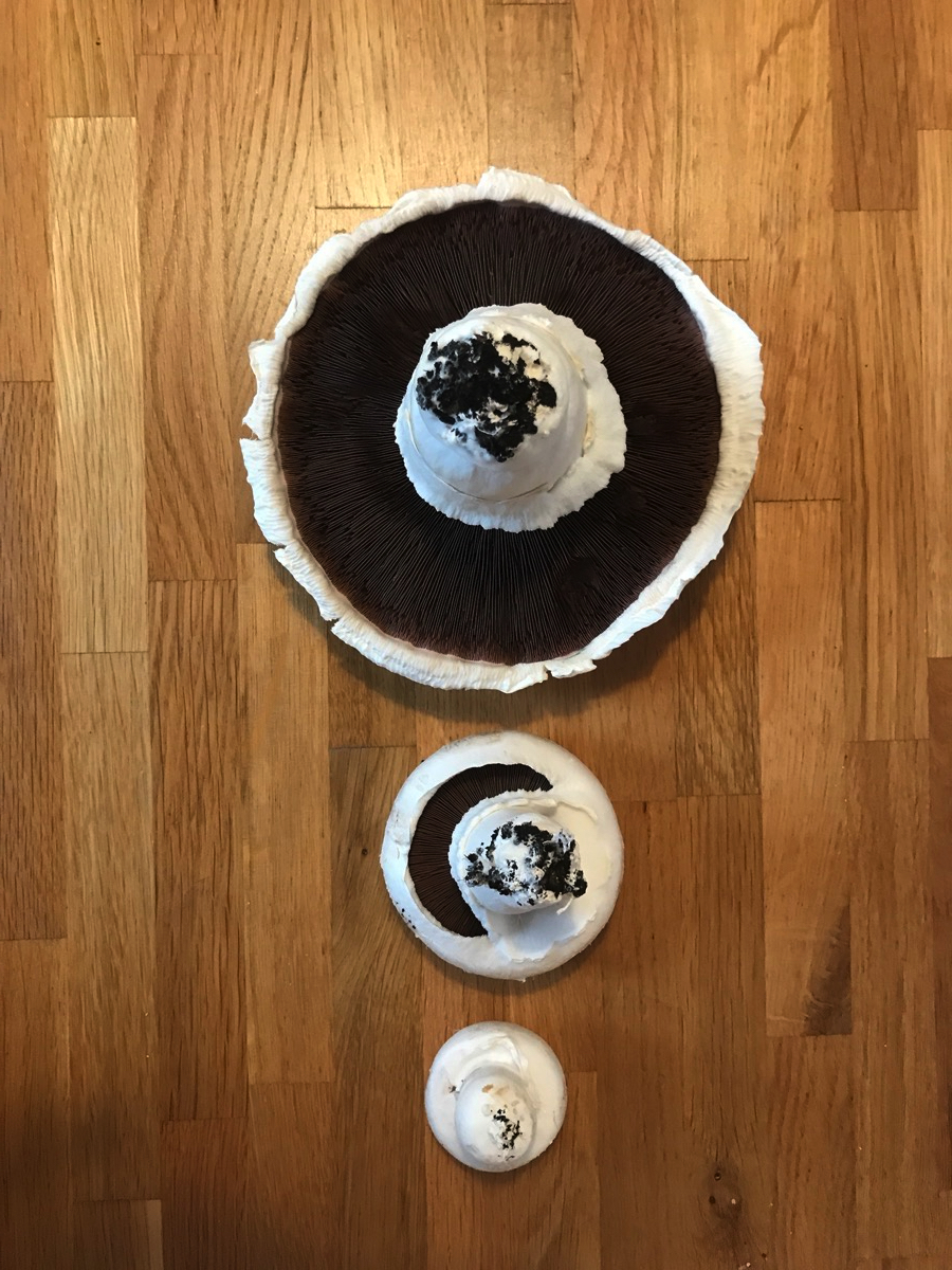 Was macht eigentlich die Pilzzucht? Heute Morgen mal wieder nachgeschaut. Wir haben jetzt eine kleine Pilzfamilie. P1 ist noch nicht ganz flügge und sucht Unterschlupf beim großen Pilz.