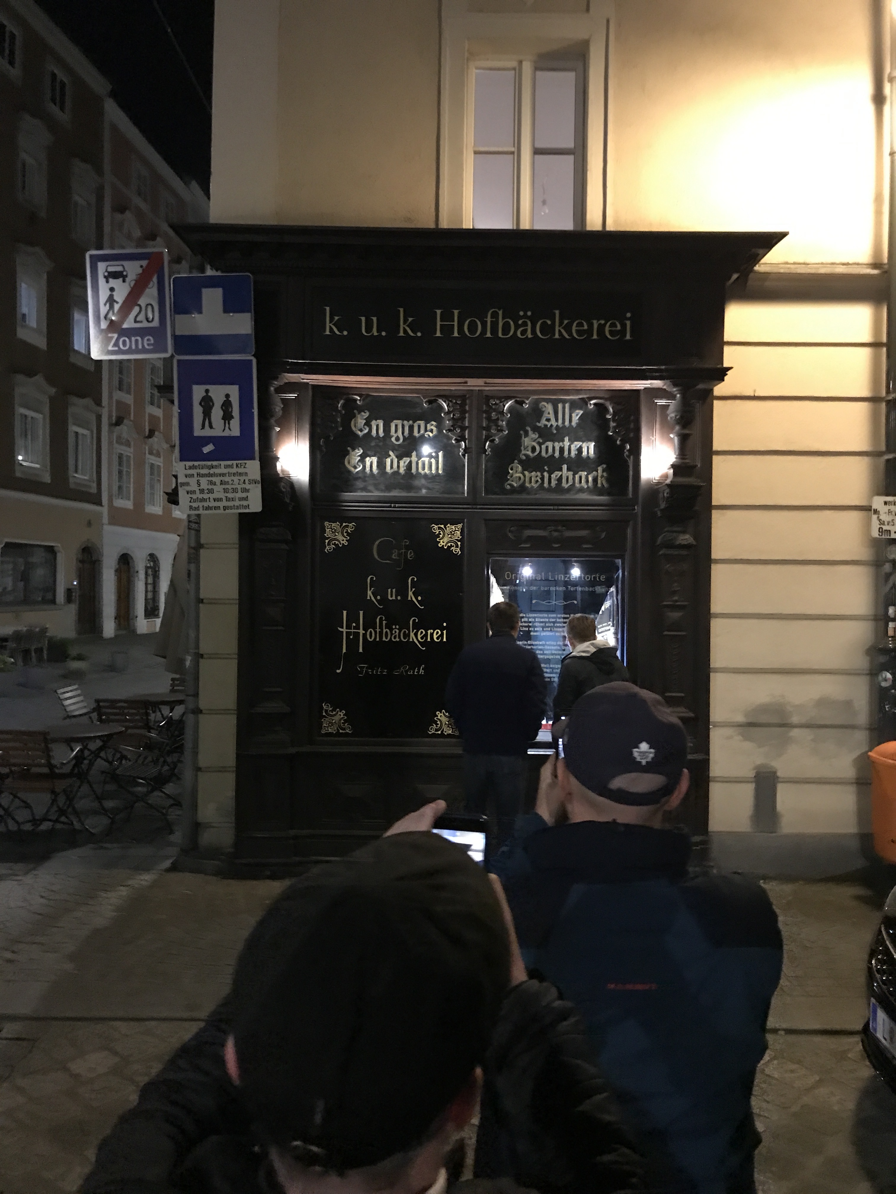 Zuerst mal muss lobend erwähnt werden: Österreich, wie lieben deine Würstlstände! Das war auch schon in Wien so. Wenn um Mitternacht der zweite Hunger kommt, der Würstlstand steht bereit. Es gibt Bier und Würste mit lustigen Namen - Klobasse oder Burenwurst - und immer wieder die Frage: warum stinkt München in der Beziehung so ab? Essen und Trinken waren wir beim Linzer Heurigen (zünftig, derb und günstig), in der stadtliebe (Cocktails und berlinernde Bedienung), Chelsea Pub (Bier), Sputnik (Bier und feine Musik auch noch nach Mitternacht) und im Klosterhof (solide touristisch).