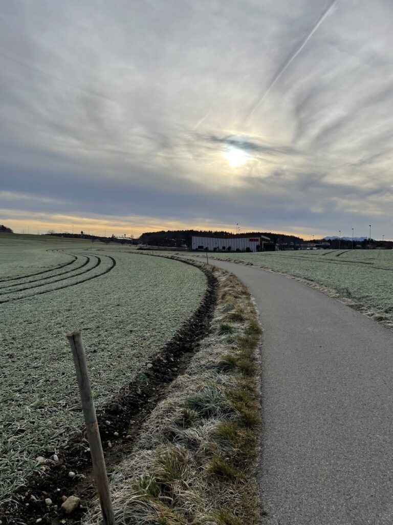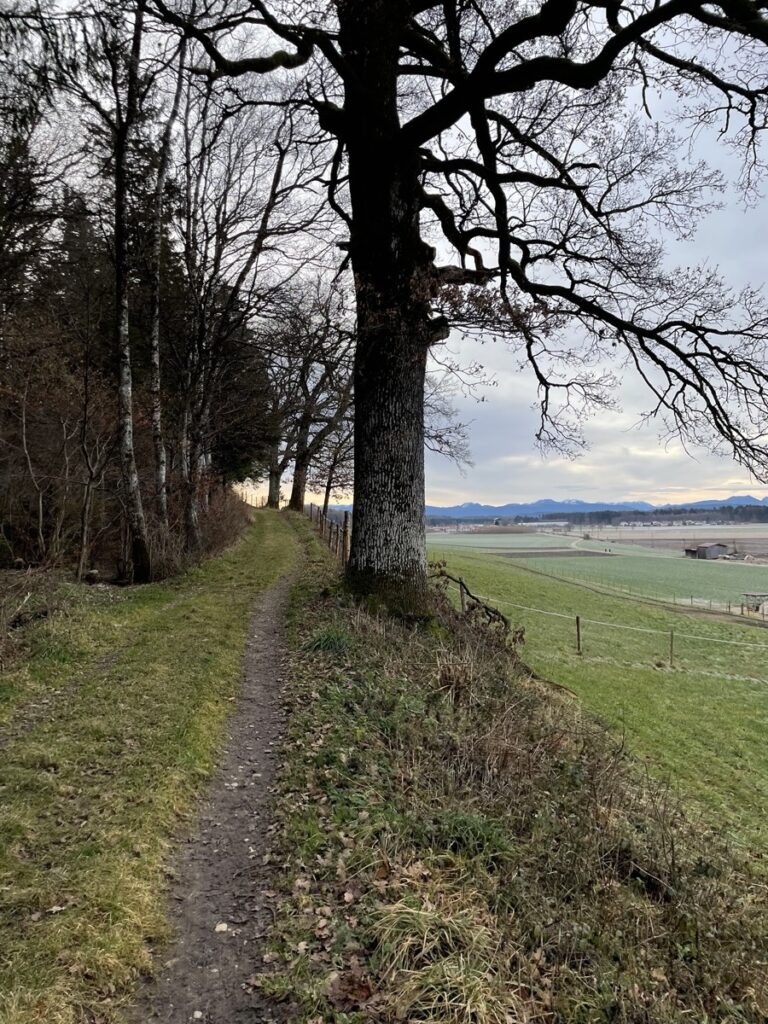 Ein schöner Spaziergang am Sonntagvormittag. Mit der S7 (Richtung Kreuzstraße) geht es in einer halben Stunde stadtauswärts. Peiß kommt eine Station nach Aying. Von dort aus geht der kleine Rundweg über Felder, Hügel und einen Wald zurück nach Aying. Immer mit schönem Blick auf die Alpen. Da wir schneller sind, als gedacht, ist es erst 11 Uhr und eine Einkehr zum Mittagessen ins Ayinger Bräustüberl fühlt sich noch falsch an. Da würden die Leute komisch schauen. Müssen wir das nächste mal besser planen. Dafür sind wir um kurz nach 12 schon wieder zu Hause. Die Kinder haben gerade gefrühstückt.