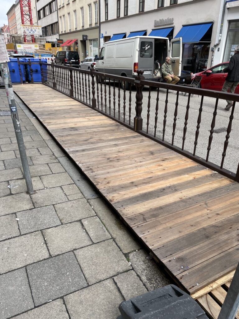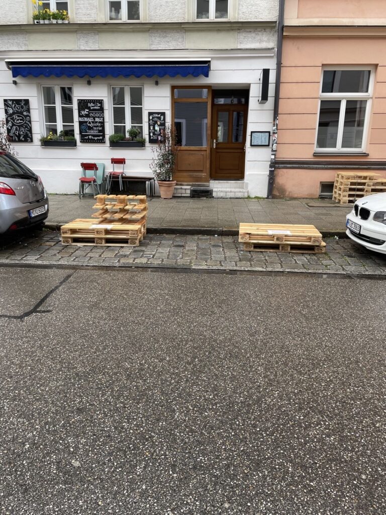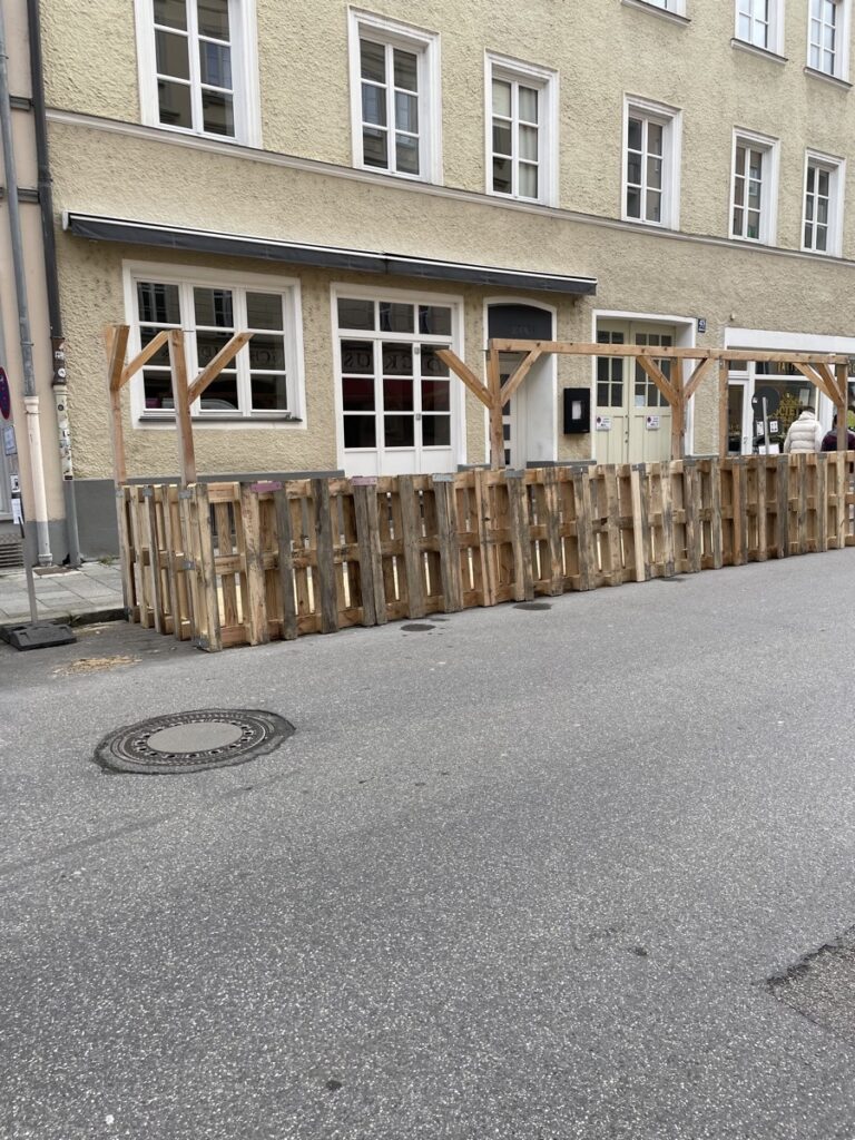 Jedenfalls: Ein schneller Streifzug durch die angrenzenden Stadtviertel zeigt zahlreiche Schanigärten im Aufbau. Da wo sonst 2-3 Autos meistens ziemlich unausgelastet rumstehen, kann man demnächst lauschig sitzen und anstoßen.