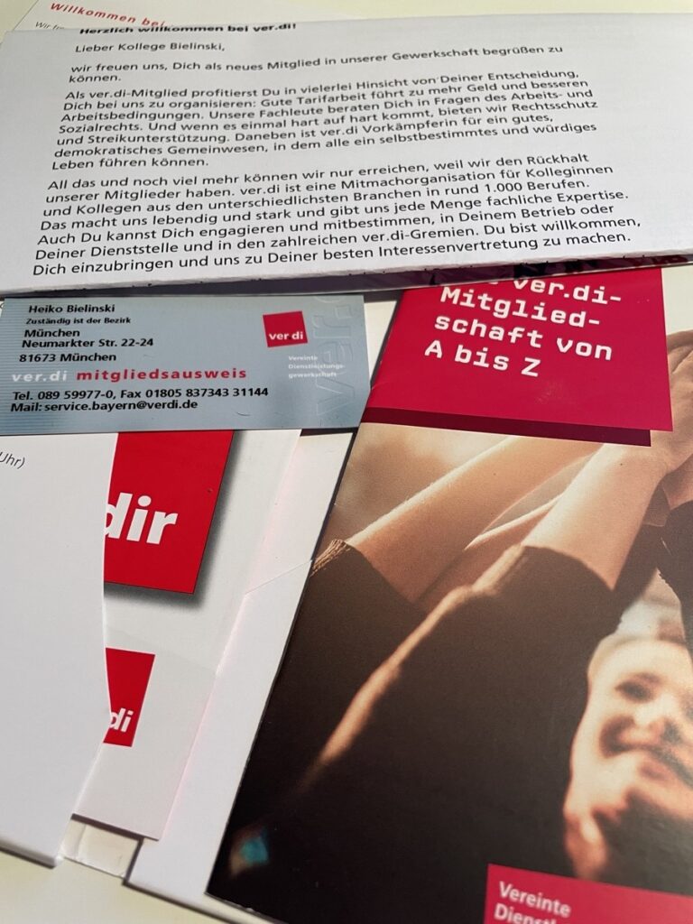 Ich hab meinen Gewerkschaftseintritt genauso verdrängt wie den Kirchenaustritt. Bei beidem wusste ich insgeheim, dass es dringend nötig und sinnvoll ist, aber dann waren immer andere Sachen grad wichtiger. Vor knapp zehn Jahren hab ich dann zum ersten mal selbst erlebt, wie wichtig ein starker, gewerkschaftsunterstützter Betriebsrat sein kann.