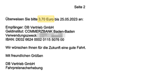 Eigentlich wollte ich das Thema ja erst mal ruhen lassen, aber heute kam ein Brief von der DB, der die hier und hier als Nebenstrang kurz erwähnte Fahrpreisnacherhebung beim Sohn zum Abschluss bringt und der sich ganz gut eignet um das Problem einmal am Stück abzuarbeiten. Vielleicht hilft es ja dem einen oder der anderen den Fehler zu vermeiden.