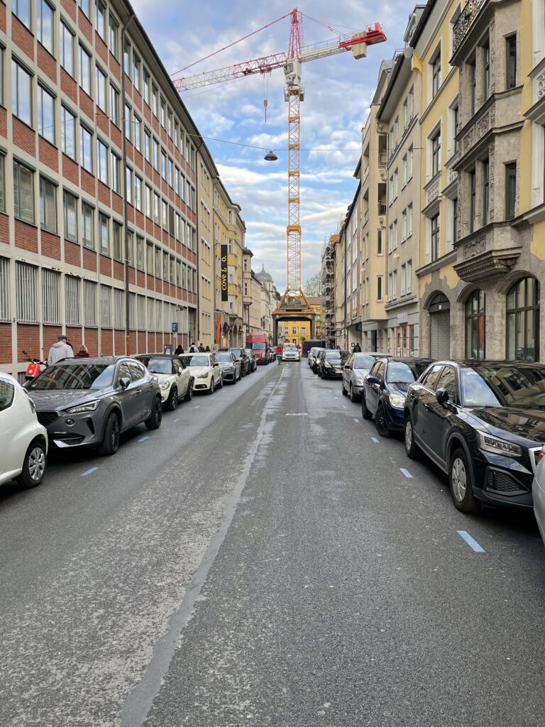 Wer ein bisschen Hamburghafenfeeling mag, geht lieber nicht auf den 25. Hamburger Fischmarkt in München (ihr geht ja auch nicht auf das Hamburger Oktoberfest in der Fischauktionshalle. Eben!), sondern schaut sich einfach den Portalkran in der Josephspitalstraße an. Da fehlen nur noch ein paar Frachtcontainer. Und als Verkehrswendeinteressierter bekommt man bei dem Anblick auch ein paar schmutzige Gedanken, wie man das Problem mit den parkenden Autos relativ einfach und kurzfristig beheben könnte.