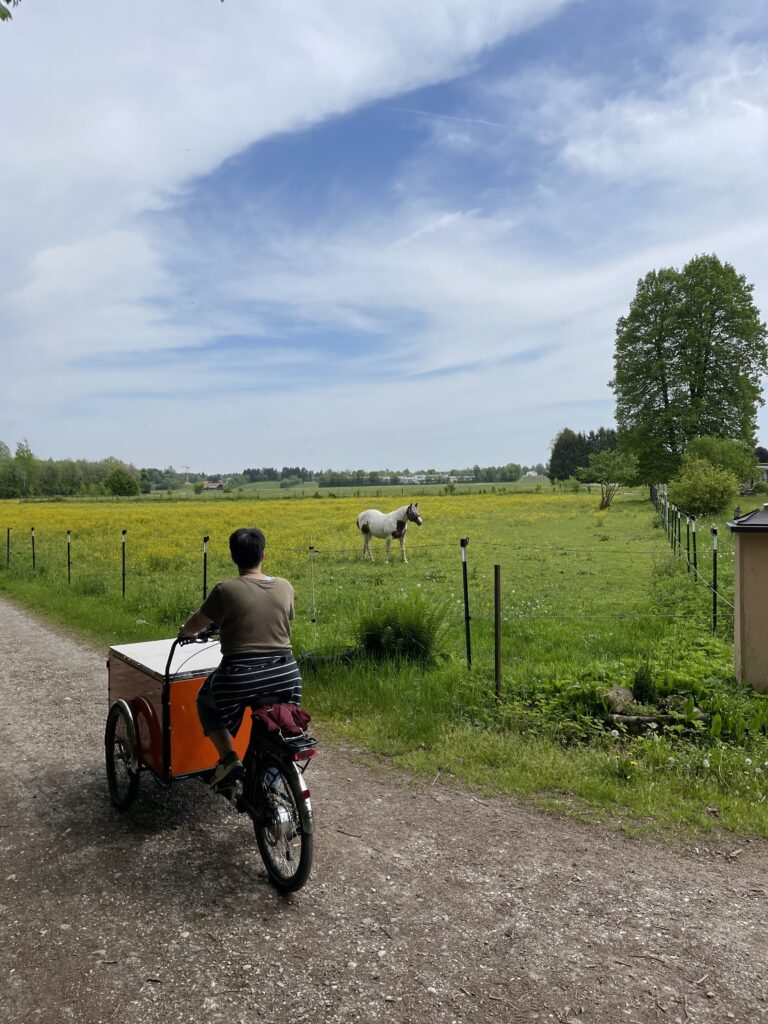 Ich unterstütze meine Lieblingsbibliothekarin bei der Überführung ihres neuen Bibbikes. Das Lastenrad wurde im Kloster Schäftlarn vom Schreiner noch ein bisschen gepimpt und muss jetzt den Weg zurück in die Messestadt finden (schöne Tour). Ich habe das erste Mal Gelegenheit, so ein E-Lastenrad zu testen - natürlich nur auf Privatgrund unter Aufsicht, weil so ein offizielles Bibbike darf natürlich nur von offiziell ausgebildeten Bibliothekarinnen mit offiziellem Bibbike-Führerschein und spezieller Bibibike-Sicherheitskleidung auf öffentlichem Grund gefahren werden - und ich muss sagen: nettes Ding, welche Gründe kann ich erfinden, mir so was zu kaufen?! Schreibts mir in die Kommentare! Die Stadtteilbibliothek Riem wird übrigens am 25. Mai eröffnet und ich sag mal so: Es gibt Gratiseis!