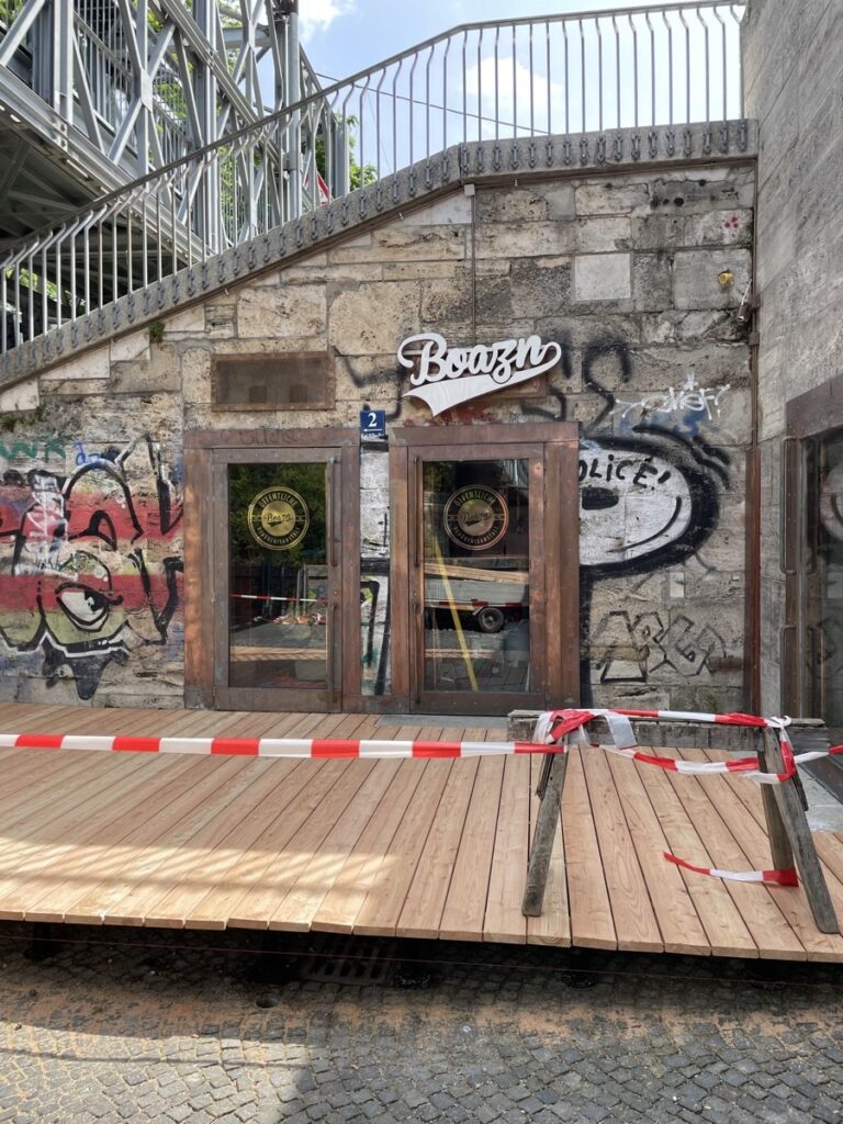 Unterhalb der Ludwigsbrücke duftet es nach frischem Holz. Die Boazn verlegt neue Dielen vorm Eingang und das lässt auf eine baldige Öffnung hoffen. Ich weiß nämlich gar nicht, ob die schon mal offen war. Das ehemalige Klohäuschen wurde während der Corona-Zeit umgebaut und eventuell kam die Pandemie der Neueröffnung in die Quere. Jetzt jedenfalls scheint sich was zu tun und es ist ja auch bald Sommer, Biere wollen im Freien an der Isar getrunken werden.