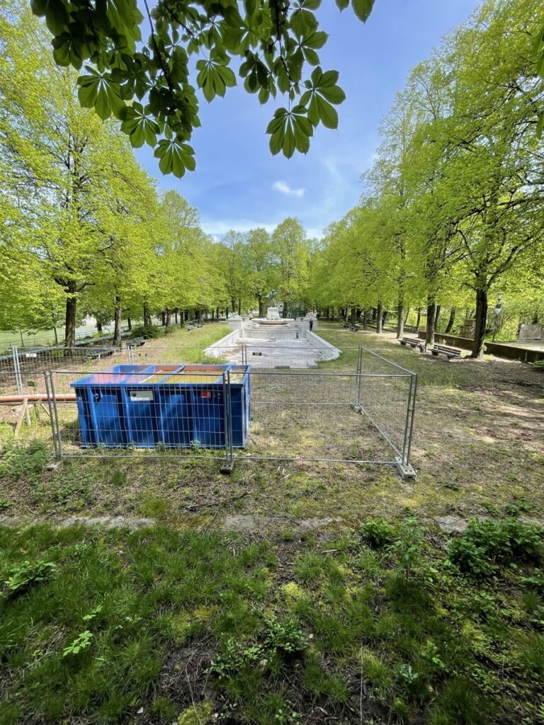 Am Kabelsteg steht Richtung Vater-Rhein-Brunnen noch offiziell ein Durchgang verboten Schild, aber der Fußverkehr nimmt sich hier seinen Raum und hat die Bauabsperrungen beiseitegeschoben. Revolution! Man kann durchziehen bis zur Ludwigsbrücke. Die ganze Insel ist aber in einem ziemlich räudigen Zustand. Die Umbauarbeiten dauern noch an.