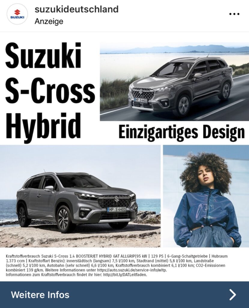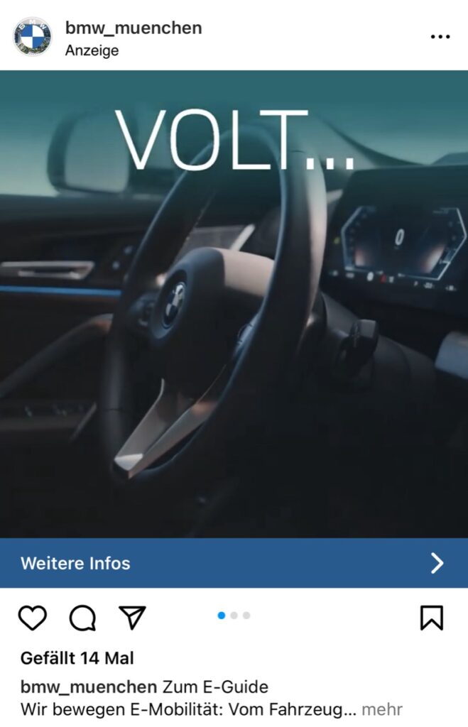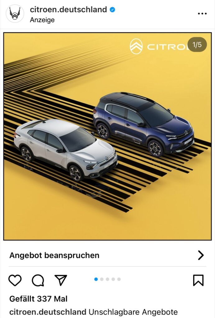Ich scrolle nach meinem Blogpost noch ein bisschen weiter Insta und werde innerhalb von 15 Minuten zugeballert mit: Autowerbung. 18 Anzeigen.