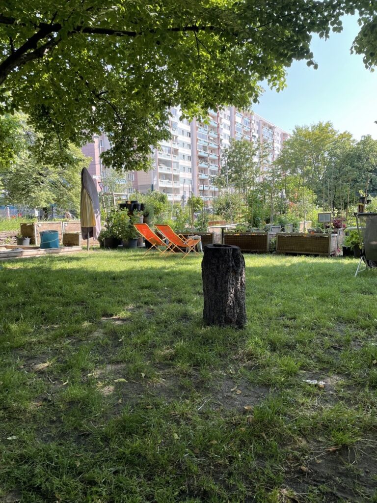 In Hotelnähe stolpere ich zufällig in einen kleinen Stadtgarten rein. Mitten zwischen Beton. Vattenfall hat dort neben seiner Zentrale einen Garten eingerichtet, der für alle offen ist. Keine Ahnung, ob das Greenwashing ist, aber mir kommt es gerade sehr gelegen und ich kann meine Falafel im Liegestuhl mit Blick auf viel Grün essen.