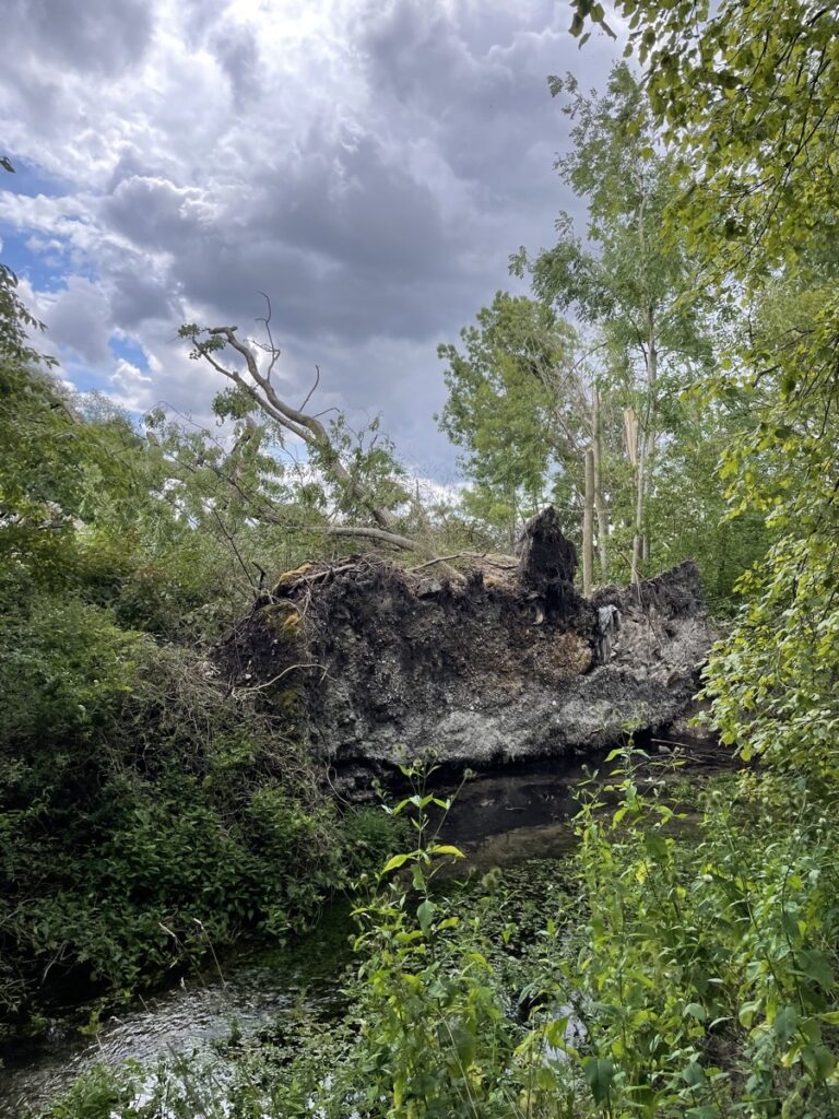 Eichenau war mir bis heute ein unbekannter Flecken auf der Münchnerischen Speckgürtellandkarte. Aber die Radtour dahin hat durchaus ihren Reiz. Wir nehmen eine Route eng an der S-Bahnstrecke entlang, weil das Wetter eher unbeständig ist und wir zur Not in den Zug hüpfen wollen. Die Strecke verläuft zu großem Teil auf Radwegen und ist sehr angenehm. Als wir die Stadt hinter uns lassen, sehen wir in der Ferne noch die zahlreichen Kräne der Großbaustelle Freiham und entdecken bei Puchheim ein bisher unbekanntes Gewässer, den Böhmer Weiher. Knapp dahinter: entwurzelte Bäume. Sturmschäden. Nach verzehrter Pizza folgt Regen. Rückweg mit der S-Bahn. Das Deutschlandticket will ja schließlich auch genutzt sein.