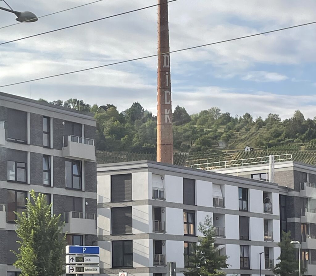 Dickpic. Sorry, aber mein Freund Oliver meinte, ich hätte den Humor eines Vierzehnjährigen im Körper eines Achtzigjährigen. Wahrscheinlich hat er recht. Der Schornstein steht in Esslingen am Bahnhof auf der rechten Seite von München aus kommend. Falls ihr für einen Freund fragen wollt.