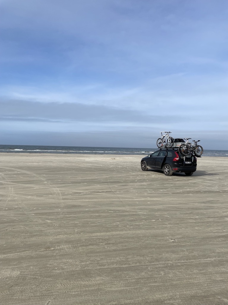 Man kann mit den Rädern bis auf den Strand fahren. Also mit den Rädern auf dem Dachgepäckträger. Der Strand ist auf der ganzen Insel mit dem Auto befahr- und beparkbar. Falls ihr euren #vanlife-Bulli also mal schick im Sonnennuntergang vor Meer abstellen wollt - hier ist der Platz!