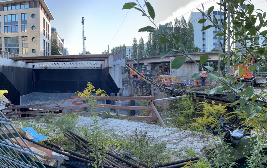 Hier um die Ecke wird jetzt schon seit über einem Jahr eine Eisenbahnbrücke renoviert. Und renoviert bedeutet: Es wird eine neue Brücke gebaut, die alte wird abgerissen, die neue Brücke wird reingeschoben. Wenn das nicht mal Bauspektakel verspricht!