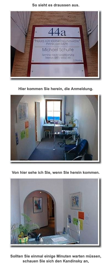 Was ist in Giesing los? Zufällig über die Webseite einer Physiopraxis gestolpert und ich weiß zwar nicht, ob er alle Wirbel wieder einrenken kann, aber zumindest lustig wird es werden. Schaut euch einfach mal den Kandinsky an.